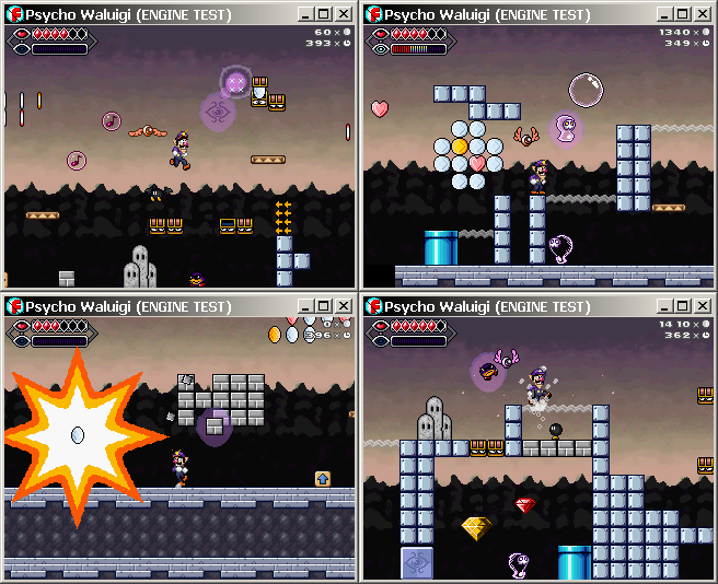 | QUOTE (Ultramario @ Oct 3 2009, 05:41 AM) | | Yeah, I'm planning to add more to this. I'll probably ditch the idea of having to collect 1000 coins for a continue, but rather have coins as currency, which you can use to buy gadgets (they do fit to Waluigi's "intelligent and cunning" character, right?). So far I've added the grabbing gun (sorta like the gravity gun in Half Life 2), which can grab enemies and even blocks and throw them. However, gadgets can't be used to infinity and run out of juice after certain amount of use (like grabbing gun can only be used for 20 seconds). Also you can only use one of them at a time. Good thing is that you don't lose a gadget after taking a hit. |